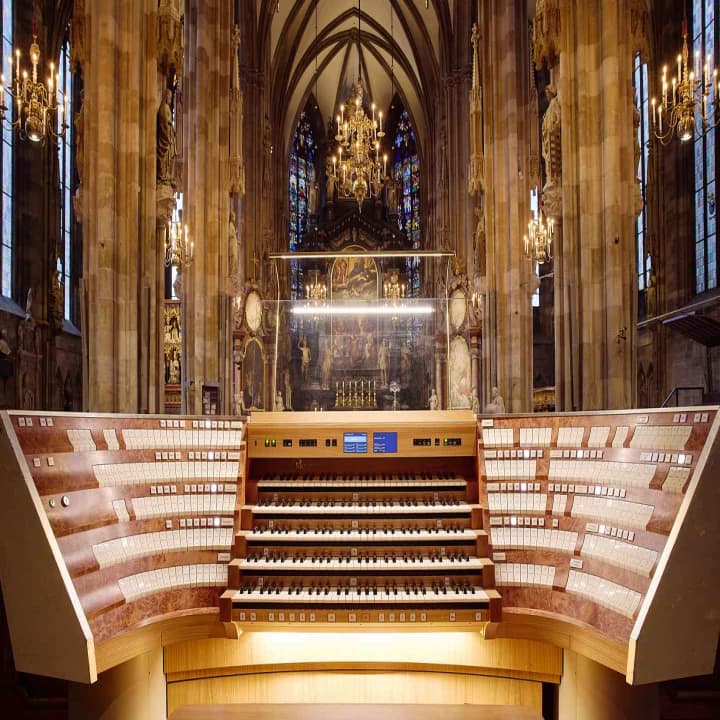 Marvel at masterpieces by Mozart, Vivaldi, Beethoven, and Bach, or catch the magical Advent concert with the world-renowned Vienna Symphony Orchestra on December 11th. Don’t miss Mozart's iconic Requiem on July 5th and during special dates in November and December. Experience a concert on the massive new organ with over 12,000 pipes, played by top-tier organists showcasing stunning virtuosity.