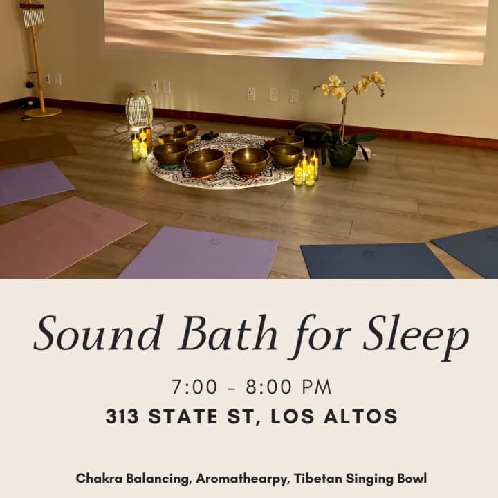Recharge your body and mind with a deeply immersive, multi-sensory experience designed to ease stress and restore restful sleep. This soothing session blends Tibetan singing bowls, calming aromatherapy, chakra meditation, and ambient visuals to melt away tension and bring emotional balance. Seats are limited—reserve your transformative experience today! Get your tickets for Transformative Sound Bath + Aromatherapy for Sleep & Stress Relief in Los Altos now!