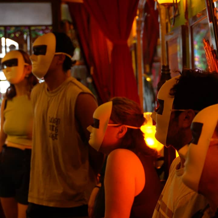 En “Voyeur” no hay escenario ni butacas: el público se mueve por todo el espacio. Detrás de una máscara, podrás seguir en tiempo real el punto de vista de uno de los 10 personajes, escuchar conversaciones privadas y sentir la emoción de lo íntimo. Una experiencia teatral inmersiva única en Barcelona.