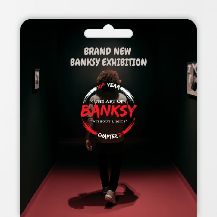 🎁 Official gift card for The Art of Banksy “Without Limits” Chapter Two – Celebrating 10 years of Defiance, featuring more than 100 original pieces, alongside immersive installations, digital mapping shows, holograms, sculptures, and never-before-seen works!