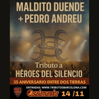 Revive la magia y la fuerza de Héroes del Silencio en un tributo único, con la presencia de Gonzalo Valdivia y la banda Maldito Duende. Una experiencia musical para fans de todas las generaciones, donde la emoción y el rock se mezclan en una noche que promete ser inolvidable. ¡Consigue ya tus entradas!