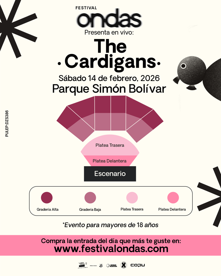 The Cardigans - Festival Ondas Bogotá 2026 🌊 El 14 de febrero, Ondas se viste de melancolía pop. The Cardigans llega a Bogotá por primera vez con un repertorio que abraza generaciones y evoca emociones suaves y profundas.