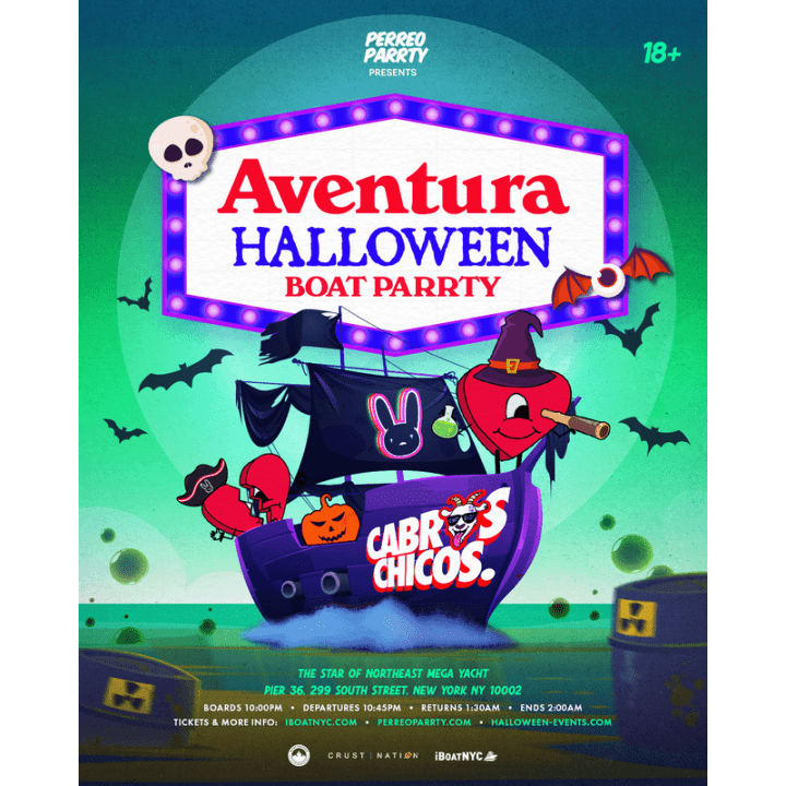 ⭐ ¡S zarpa hacia una espeluznante experiencia de baile latino con Halloween Aventura en el Hudson! Celebra Halloween en las aguas de NYC con Cabros Chicos, DJs en directo y ritmos latinos sin parar.