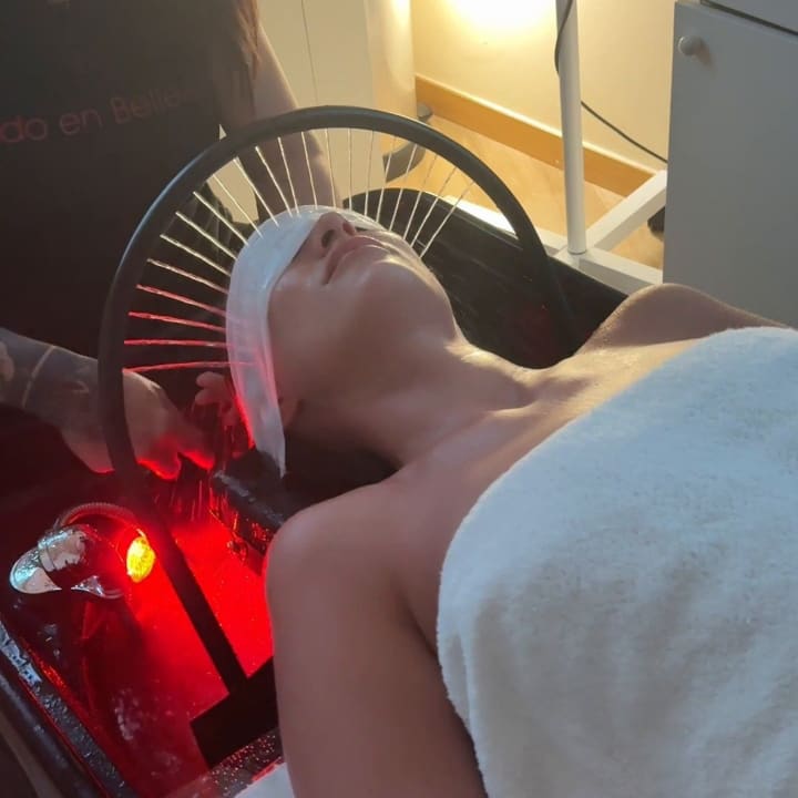 The HydroGlow Detox Ritual is a comprehensive experience that blends sensory techniques, advanced machinery, and active cosmetics to deeply renew your skin and scalp. Step by step of the experience: facial and scalp preparation with a wrapping towel and eye protection, followed by low-pressure spa arc moistening on the face and scalp. Next, application of XPUMASK foam to key areas of the scalp and face, and a deep cranial and facial massage to release tension and activate tissues. This is followed by cleansing with the spa arc’s nebulized water, removing impurities and residues, and facial stimulation with vibration and LED technology to improve the penetration of active ingredients. Finally, a personalized facial mask is applied according to your skin’s needs, followed by facial and scalp vaporization + infusion of specific actives. The ritual closes with a facial LED mask to seal in the benefits. Enjoy this HydroGlow Detox Ritual: total renewal of skin and hair at Todo en Belleza, Madrid!
