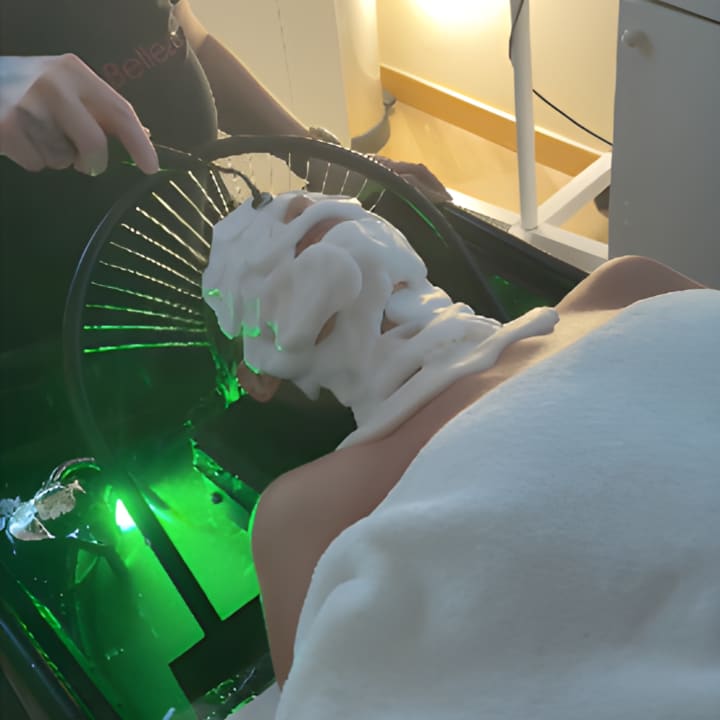 💆♂️ Facial serum and final scalp treatment, with a massage and specific care for the ends