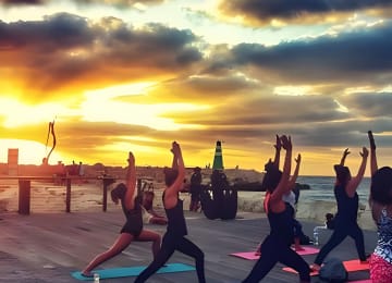 Feel the magic of the sunset with a 50-minute yoga session on Tel Aviv beach. Perfect for any skill level, this class helps you stretch, breathe, and relax as the sun dips below the horizon. The Beach Club Tel Aviv offers the ideal setting with mats on a wooden platform and expert instructors leading you through gentle movements. With the soothing sounds of the sea and a refreshing breeze, it's the ultimate way to unwind and connect with others. Get your tickets for Sunset Yoga and Meditation in Tel Aviv!