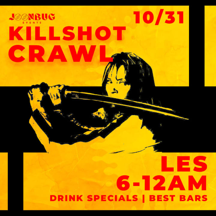 Join us for the Les Killshot Halloween Bar Crawl, where the city’s nightlife meets the afterlife! From 6 PM to midnight, we’ll haunt the Lower East Side's hottest bars, dancing and toasting the night away. Dress up as your favorite spooky character and enjoy exclusive drink specials, eerie surprises, and a full night of hauntingly good vibes. Don’t miss out on this unforgettable Halloween experience—get your tickets now for the Les Killshot Halloween Bar Crawl 10/31 in New York, NY!