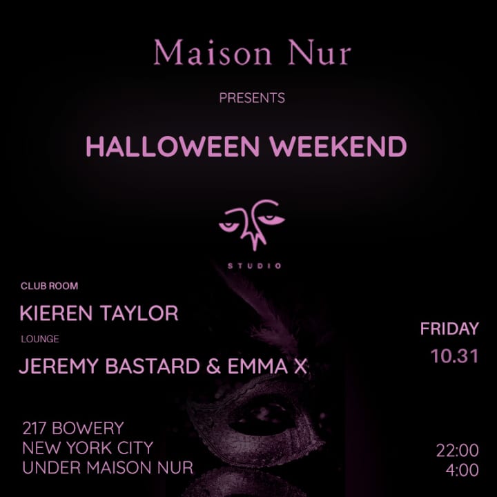 ⭐ ¡Entra en la Mascarada de las Sombras de Maison Nur y vive Halloween en Manhattan como nunca antes! Maison Nur se transforma en un oscuro y seductor patio de recreo de dos niveles donde chocan la moda, la música y la vida nocturna.