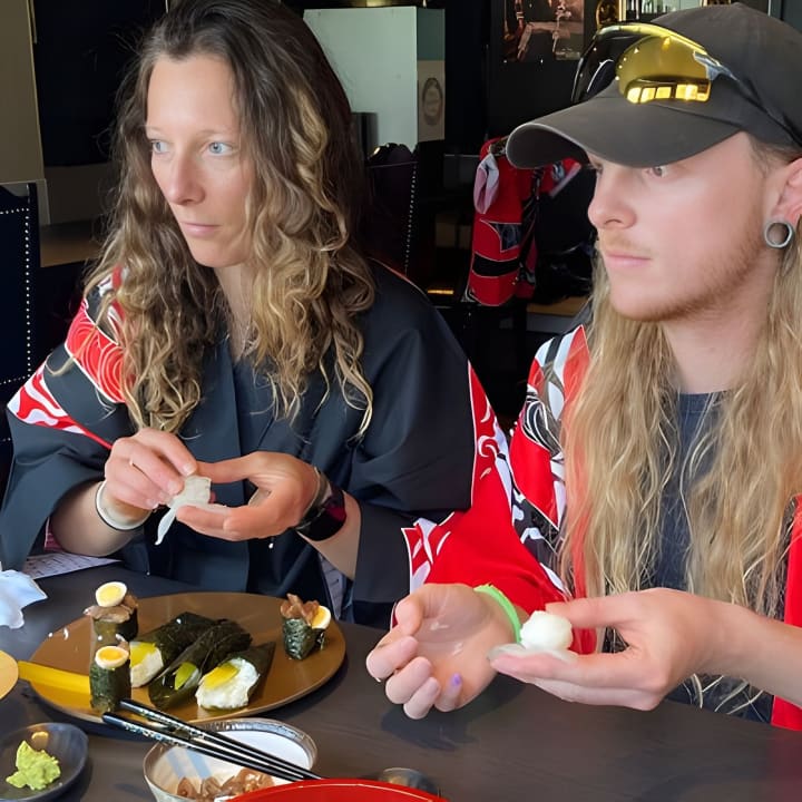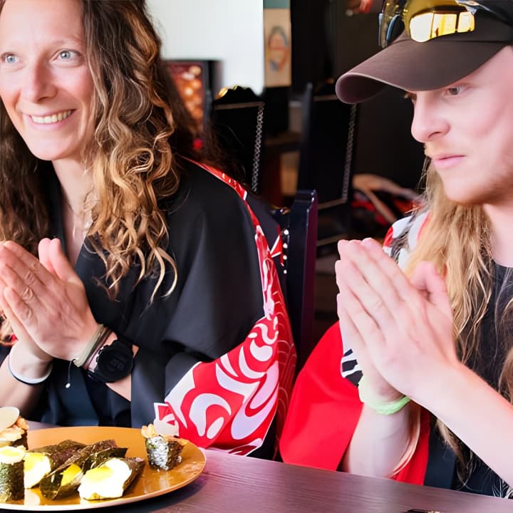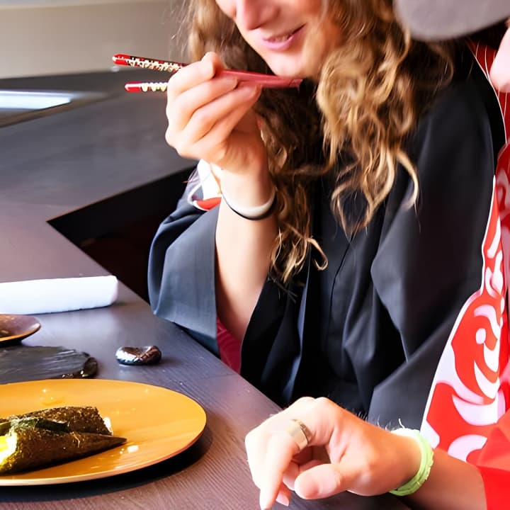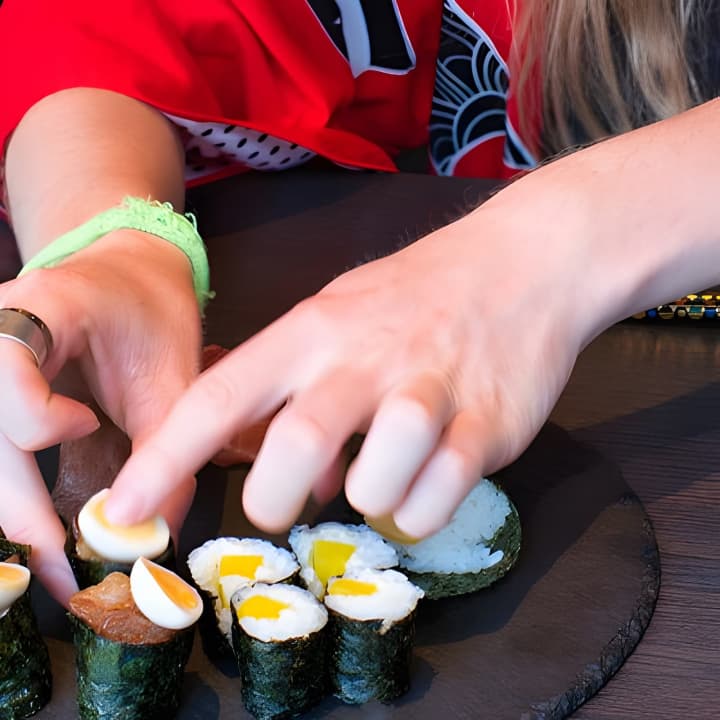 京都で寿司作りの技を学ぼう!まずは手を洗い、握り寿司の技術をマスターしよう。ご飯の形を整え、お気に入りの具をのせ、わさびで仕上げる。次に、美しい巻き寿司を作り、寿司職人が包丁で完璧に切り分ける。異なる海苔のサイズで寿司をカスタマイズ。作品を並べ終えたら、いよいよ実食!寿司や天ぷらなどを楽しめる美味しいランチを堪能しよう。京都での和牛寿司作り体験のチケットを手に入れて!