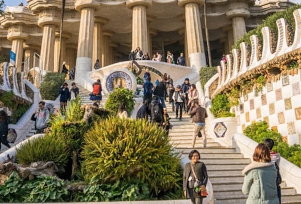 🌿 Pasea por las vibrantes estructuras modernistas de Gaudí y sus impresionantes jardines.