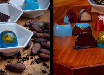 ✔️ 2 filled chocolate bonbons + small cacao tasting bar.