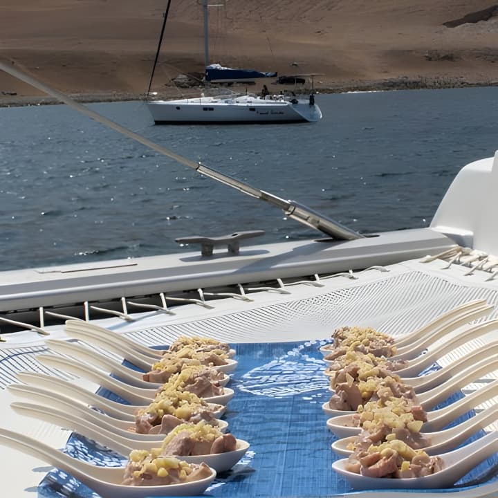 ✖️ CATERING ON BOARD - S/180.00 PER PERSON - 72 HOURS IN ADVANCE - CHEESE TABLE - PERUVIAN SEAFOOD PIQUEOS (CEVICHE FISH SOLEN, OCTOPUS OLIVE, RICE WITH SEAFOOD).