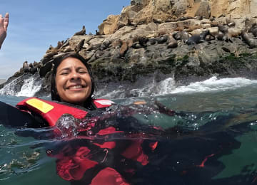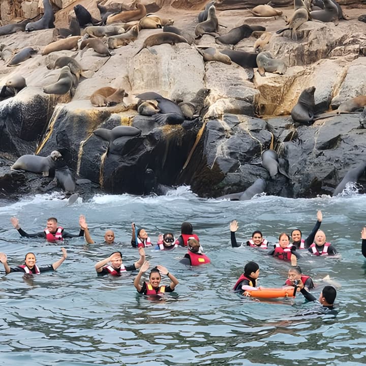 Dive into the adventure of a lifetime by swimming with sea lions off Palomino Island in Lima! Sail through waters steeped in history, check out the old prison of Fronton, and be amazed by the diverse wildlife. Spot Humboldt penguins and glovebirds at the Cabinzas Islands before heading to Palomino Island to swim with playful sea lions in their natural habitat. This is the perfect blend of history, nature, and thrill. Get your tickets for Swimming with Sea Lions on Palomino Island in Lima!
