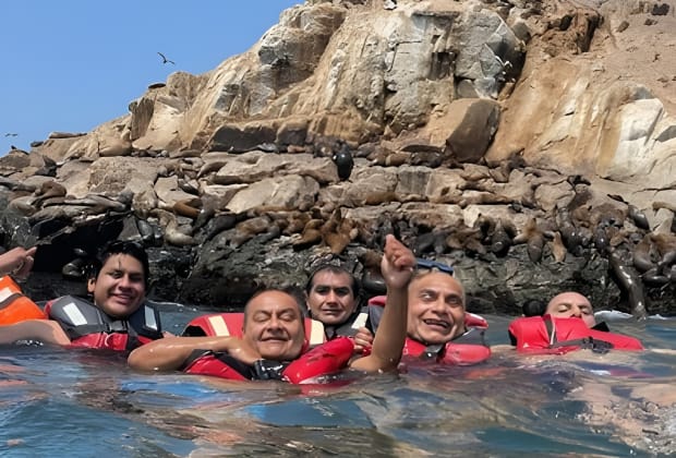 disfruta nadando con lobos marinos juguetones en su hábitat natural en la Isla Palomino.