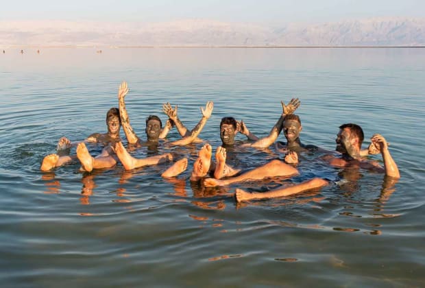🌊 לצוף בים המלח ולהשתמש בבוץ העשיר במינרלים שלו.
