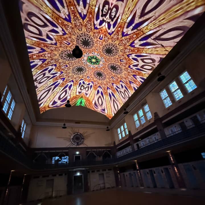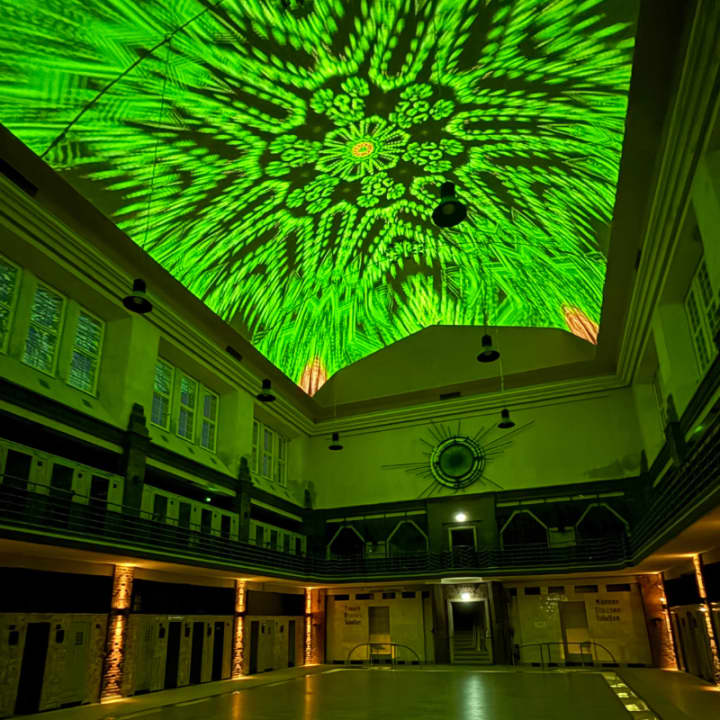 Schenke eine Reise durch einen einzigartigen Lost Place: 150+ Motion-Art-Werke auf 150 Screens, Lichtspiele im Becken und die immersive Deckenprojektion BEYOND treffen auf historische Architektur. Tagsüber strahlt das Sonnenlicht, nachts schwebt die Kunst — ein visuelles Gesamterlebnis.