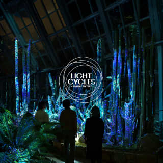 京都府立植物園:LIGHT CYCLES KYOTO (ライトサイクル京都) - ギフトカード 🎁 日本最大規模を誇る京都府立植物園の「観覧温室」に設けられた4つの体験ゾーンを巡る「LIGHT CYCLES KYOTO (ライトサイクル京都)」のギフトカードで、植物と光、そして音が織りなす幻想的な体験を贈りませんか?。多種多様な植物の姿や香り、そしてディズニー、安室奈美恵など様々なコラボレーション実績を有するMoment Factoryによる光、音、プロジェクションのコラボレーションが、まるで息をしているかのように輝く花々や樹木に溢れた空間へと皆様を誘います。