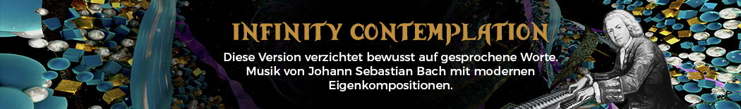 INFINITY Contemplation: Diese Version verzichtet bewusst auf gesprochene Worte. Alleine Animationen sowie die Musik nach Johann Sebastian Bach, ergänzt durch moderne Eigenkompositionen und zeitgenössische Beats, verwandeln den Raum in einen Ort stiller Wahrnehmung. Ohne Deutung folgt das Publikum den eigenen Gedanken, vom Augenblick zur Ewigkeit. Termine: siehe in der Datums- und Ticketauswahl