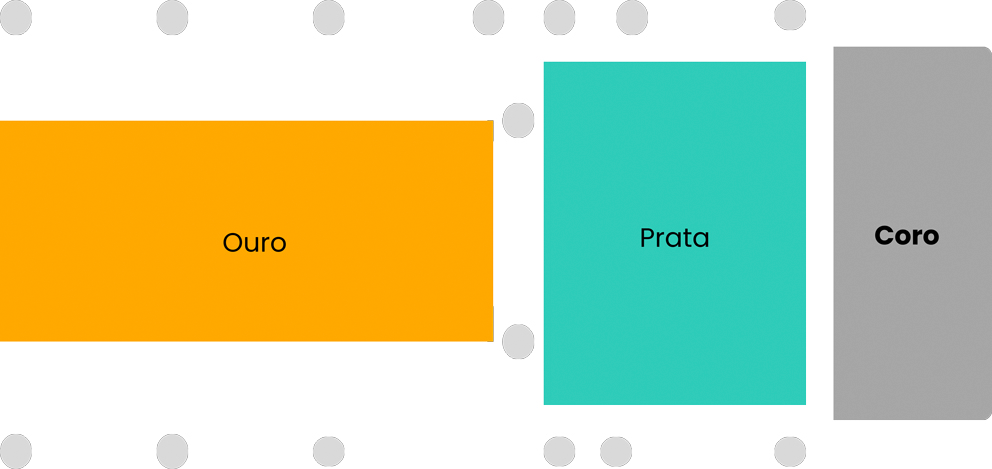 Categoria Ouro: do meio ao fundo da nave, para uma perspectiva panorâmica.