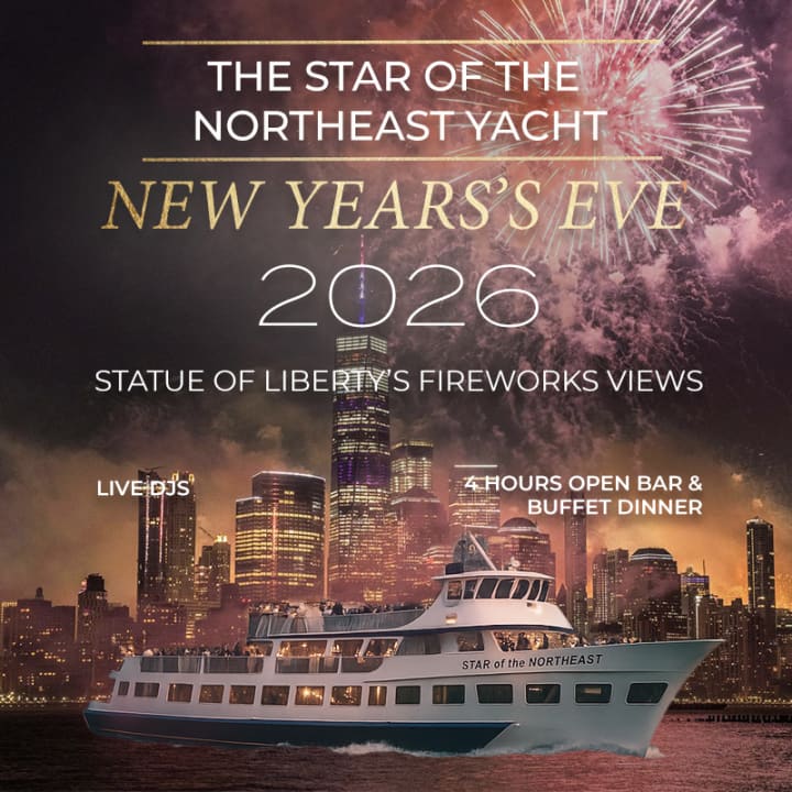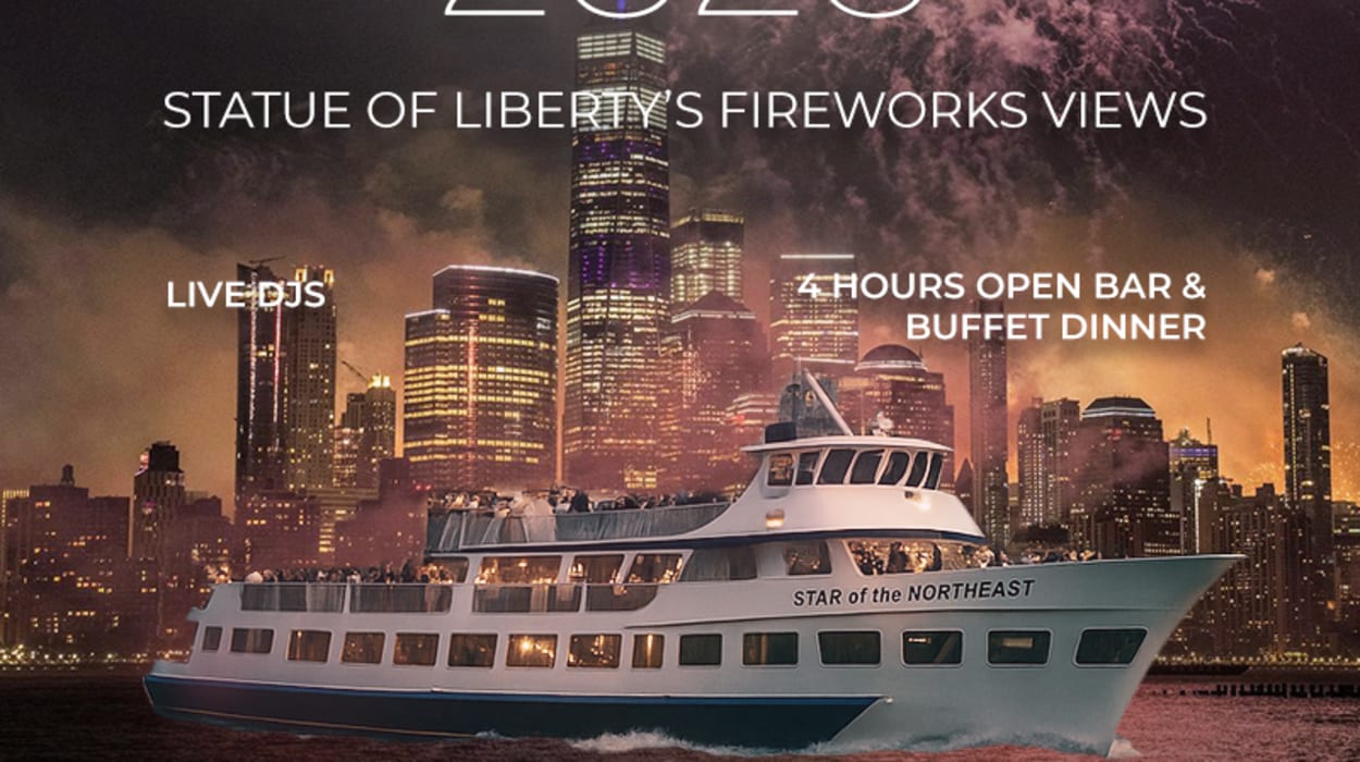 Set sail on the luxurious New Year's all-inclusive cruise! Family-friendly experience with a open bar, buffet, and amazing Fireworks views. Celebrate the New Year's Eve 2026 on the water aboard the Northeast Star . This exclusive cruise offers a front-row seat to New York City’s famous Statue Of Liberty New Year's Eve fireworks display, with uninterrupted skyline views and a festive atmosphere. Enjoy a buffet dinner, unlimited refreshing drinks, and reserved seating options across multiple indoor and outdoor decks as you sail past iconic landmarks, with a curated live DJ setting the mood and plenty of space to unwind. Experience the magic of New Year's Eve with our exclusive cruise! Sail to the Statue of Liberty and secure the best water-front vantage point to witness the spectacular fireworks show. Don't miss this unforgettable celebration, get your tickets now!