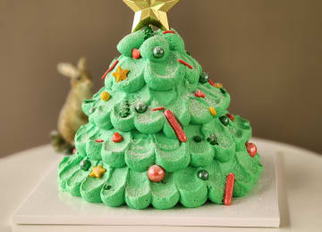 - Pipe the cream to shape the tree.