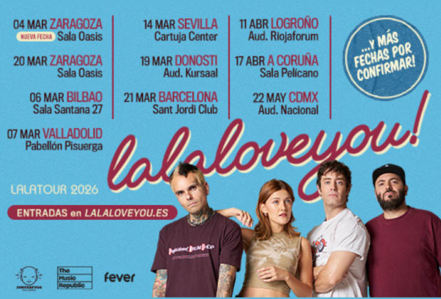 ¡Prepárate para una noche llena de intensidad y emoción con La La Love You en Bilbao! “La La Tour” es la nueva y ambiciosa gira de esta banda madrileña de Parla, que ha marcado un antes y un después en el pop y punk pop español. Con discos de oro y platino, 7 discos de platino con “El Fin del Mundo”, doble platino con “El Principio de Algo” y el premio MTV EMA a Mejor Artista Español, La La Love You ha conseguido llenar recintos como el WiZink Center y agotar entradas tanto en España como en Latinoamérica. Tras años girando sin parar y conquistando a la Generación Z, esta gira recorrerá las principales salas del país y México, con un directo lleno de himnos festivos y pura energía. No te pierdas este evento único en Santana 27. ¡Las entradas son limitadas y volarán rápido!