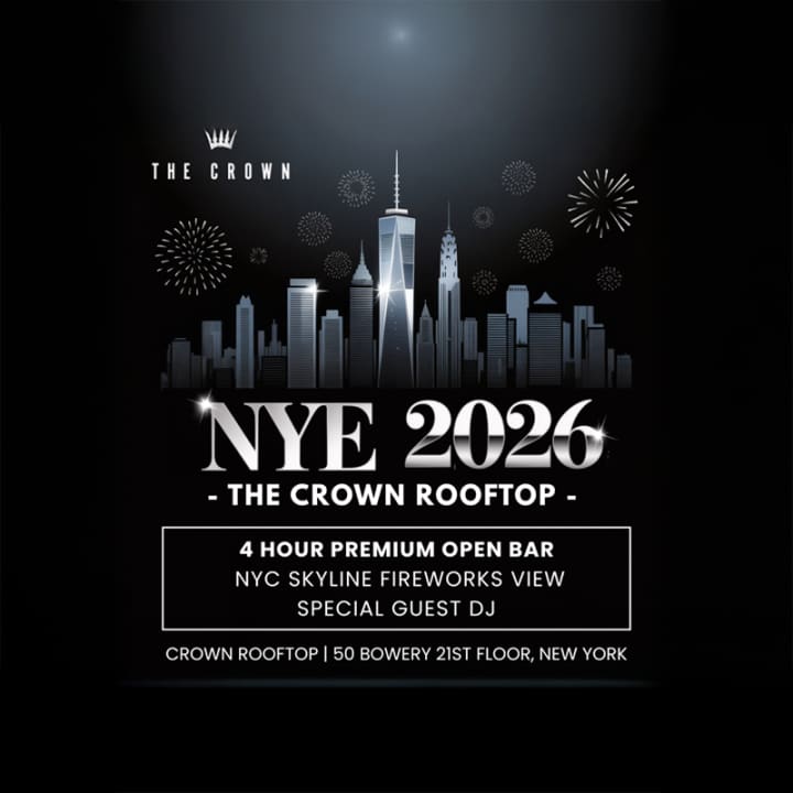 ⭐ New Years Eve 2026 @ The Crown NYC Rooftop w/ 4 Hour Open Bar & Fireworks View in New York, NY. Get your tickets now for this unforgettable night!