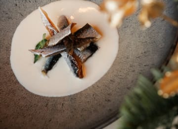 - Session IPA Sardina ahumada en casa sobre crema de almendras, coco y lima Mahou Reserva