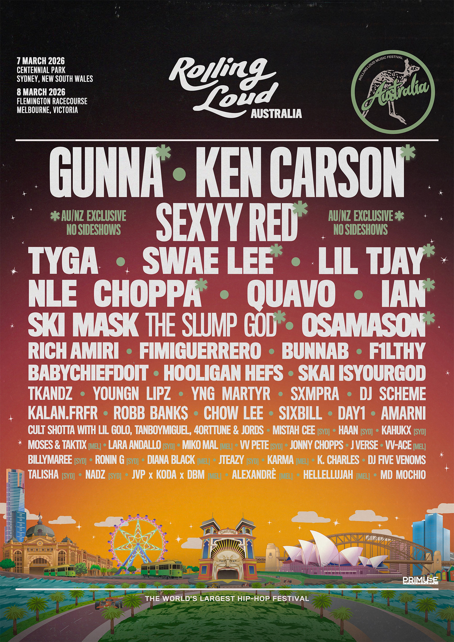 Rolling Loud Melbourne (8 March 2026) ⭐ Rolling Loud Melbourne is about to erupt with sky-shaking energy and a wave of global hip-hop heavyweights. This next-level fusion of music, culture, and pure chaos is set to rewrite the rules of festival experiences. Get your tickets!
