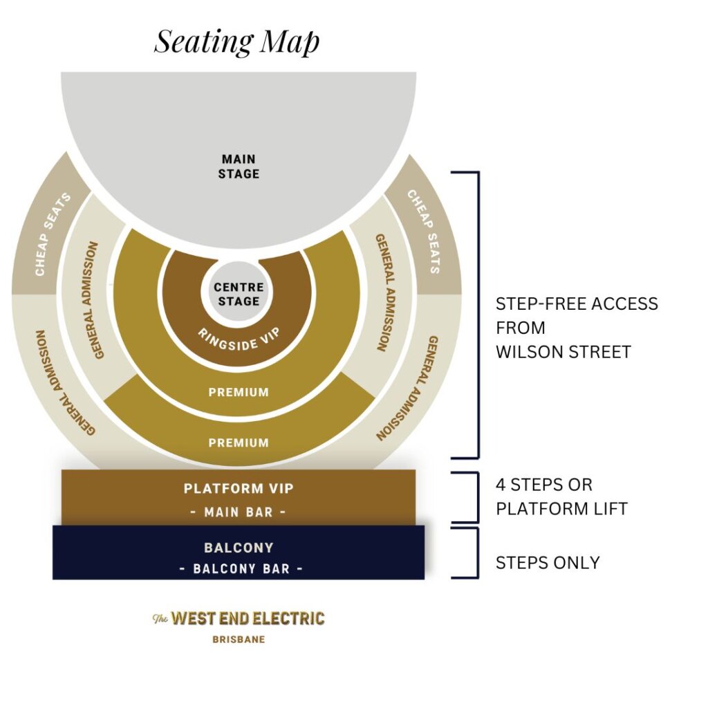 🥂 Ringside VIP: Reserved seating with a glass of sparkling, up close to the performers