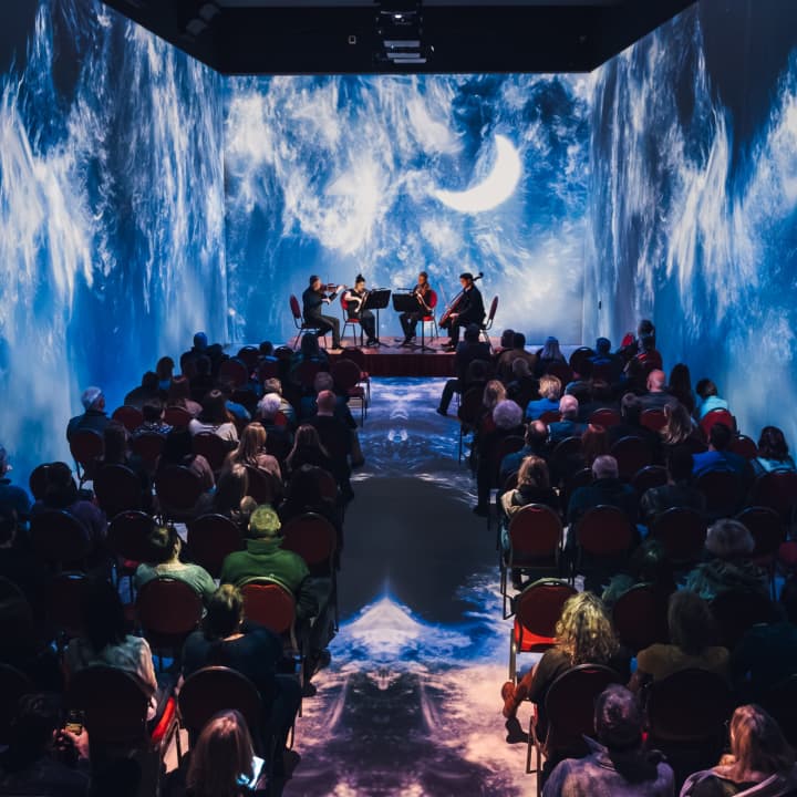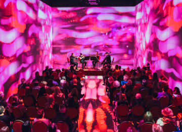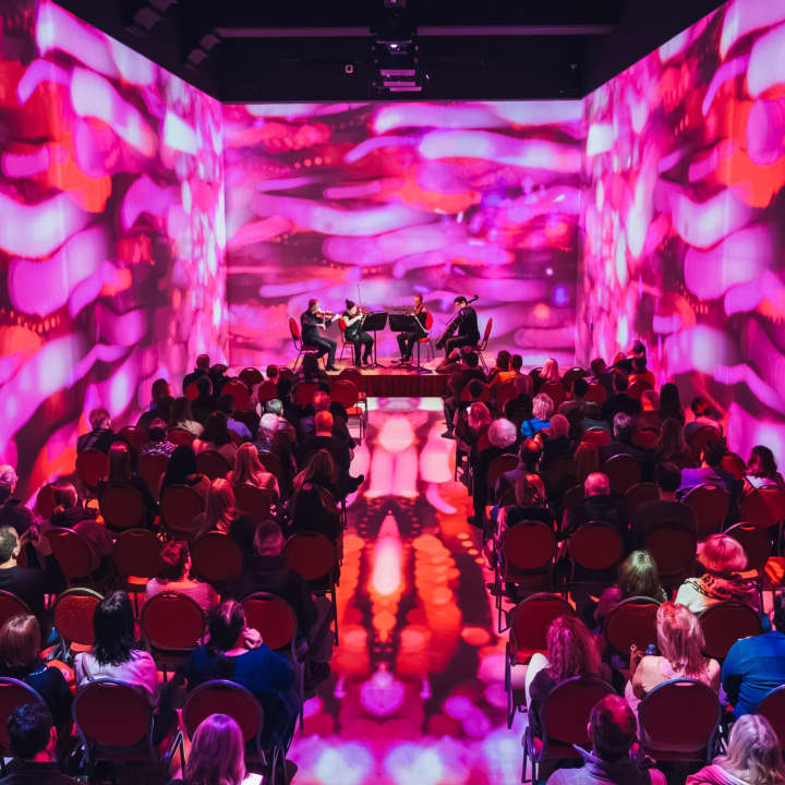 ⭐ Experience moments where music begins to shine – embedded in a world of projections and artistic animations, a string quartet brings modern melodies to life anew. Get your tickets now for an experience that is not only heard but felt.