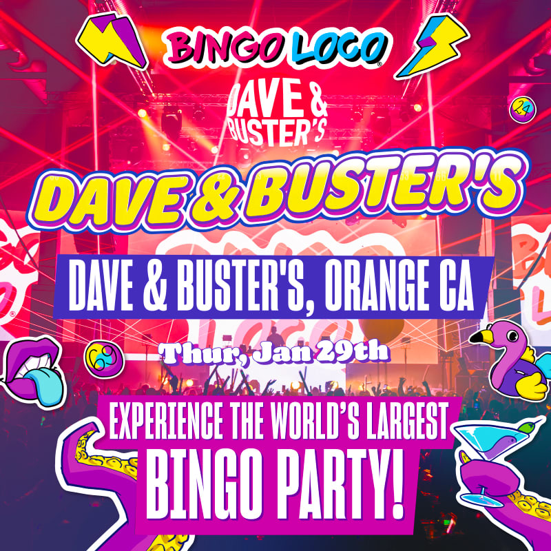 ⭐ After selling out shows across the globe, Bingo Loco heads to Orange County to host one of its biggest shows yet! This is not your grandma's bingo... it's a full-on fiesta with comedian MCs, throwback anthems, lip sync battles, dance-offs, dancers, confetti showers, CO2 cannons, rave rounds, conga lines, and—of course—bingo!
