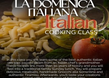 En esta clase aprenderás a preparar con tus propias manos los platos clásicos de un domingo en una familia italiana. Recetas transmitidas de abuelas a nietos para mantener viva la tradición. Cocinarás albóndigas, ñoquis caseros a la sorrentina y un exquisito tiramisú. Al final, degustarás tus platos acompañados de una copa de vino italiano. Perfecto para divertirse y aprender en un ambiente auténtico y acogedor. Después de la compra, preséntate puntualmente el día de la clase en Violeta, Calle Rodeo 4, Málaga.