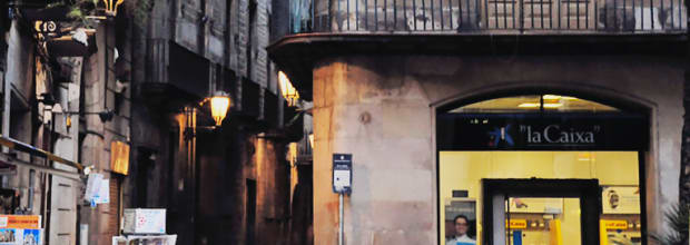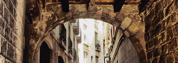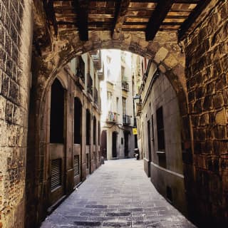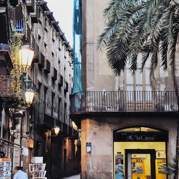 20.45 Nos reunimos en la Plaza del Àngel donde encontrarás a tu guía con paraguas rojo de Sandemans New Europe Barcelona