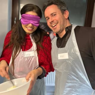 🎭 Take on a fun blindfolded challenge while filling cannoli