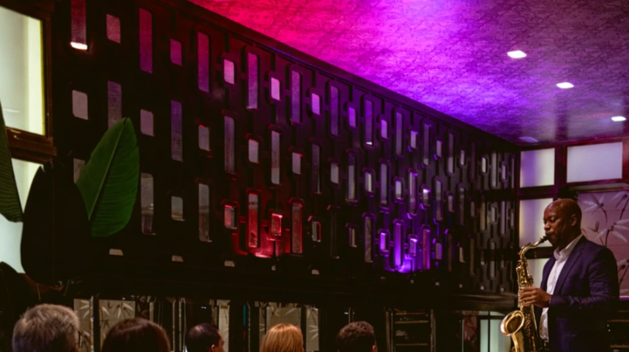Viaja al glamour de los años 20 en una velada única donde la gastronomía y la música se encuentran. Nuestro restaurante ofrece una experiencia sensorial con un menú degustación de 7 platos, creado con producto de temporada y un toque creativo, mientras el jazz en directo marca el ritmo de la noche. Luces tenues, estética vintage y una atmósfera elegante convierten la cena en un auténtico viaje en el tiempo, inspirado en los clubes clásicos de la época dorada del jazz. Una propuesta ideal para quienes buscan una noche especial, sofisticada y llena de encanto. ¡Disfruta de tu cena degustación con jazz en directo en Vibra Speakeasy, Barcelona!