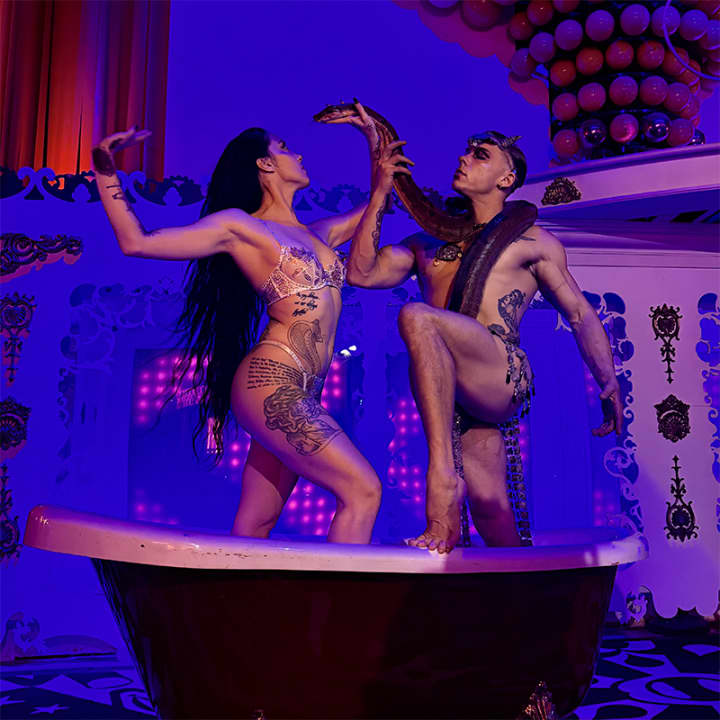 🎪 Coreografías deslumbrantes con acrobacias aéreas y burlesque acuático