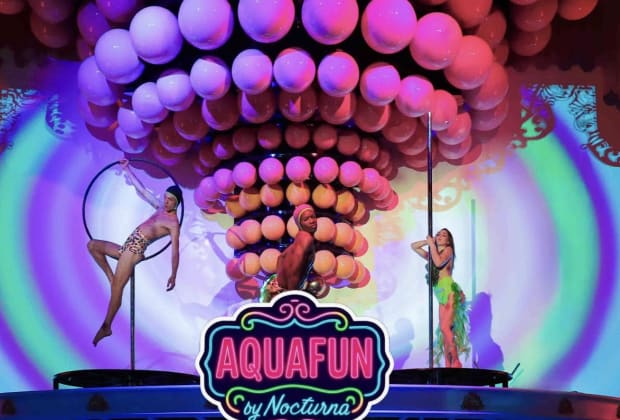 Esta electrizante producción combina acrobacias aéreas que fluyen como natación sincronizada, un burlesque acuático ardiente y sirenas seductoras que te llevan a través de un sueño vintage al estilo pin-up de Hollywood. Sexy. Espectacular. Imperdible. ¡Consigue tus boletos para AquaFun by Nocturna en Miami!