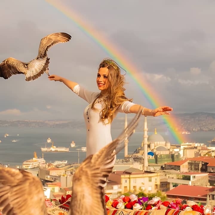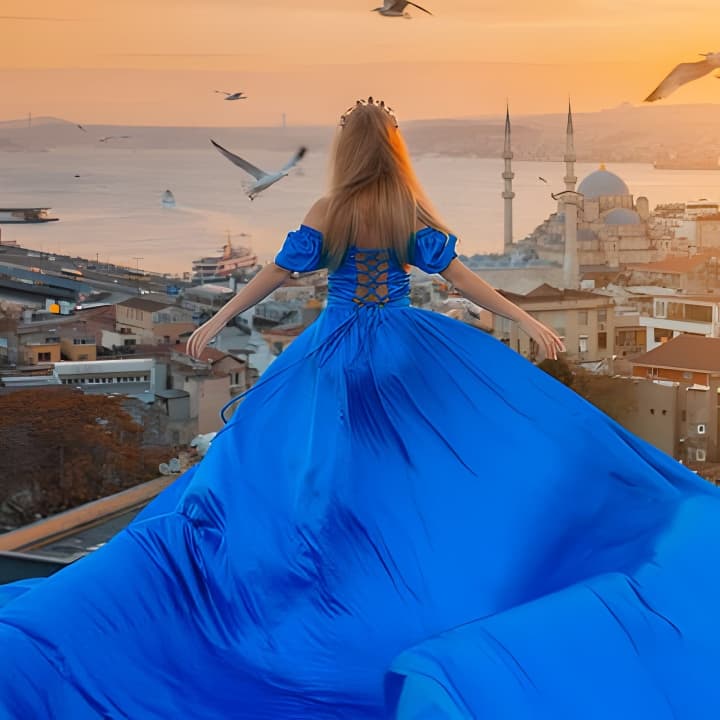 Feel like a star in this stunning rooftop photoshoot in Istanbul! Capture unforgettable memories with a fabulous flying dress against the city's breathtaking backdrop. Get your tickets for Istanbul Rooftop Photoshoot with Flying Dress!