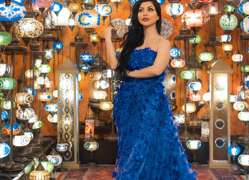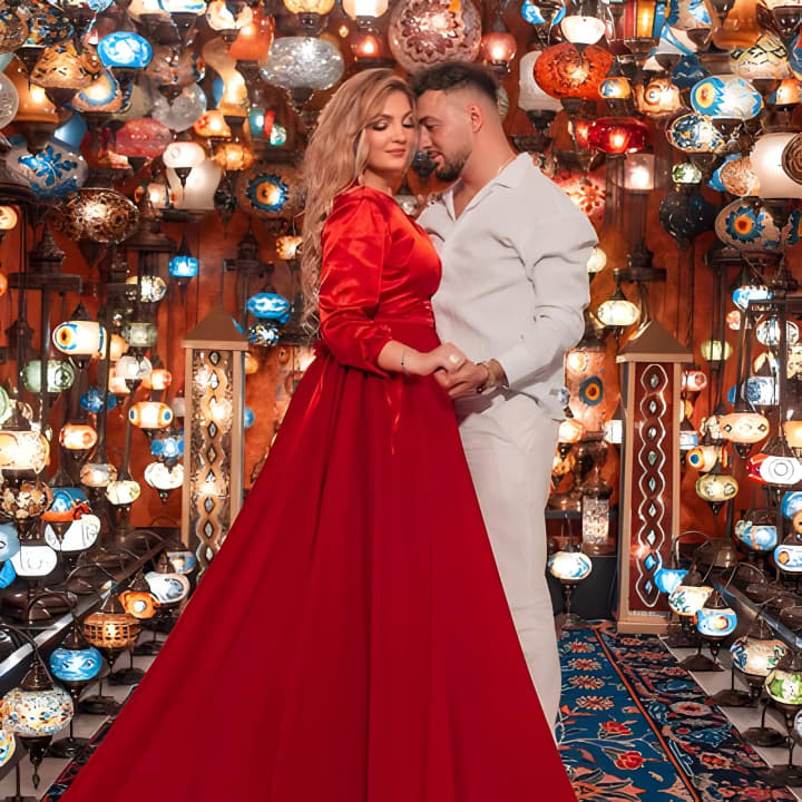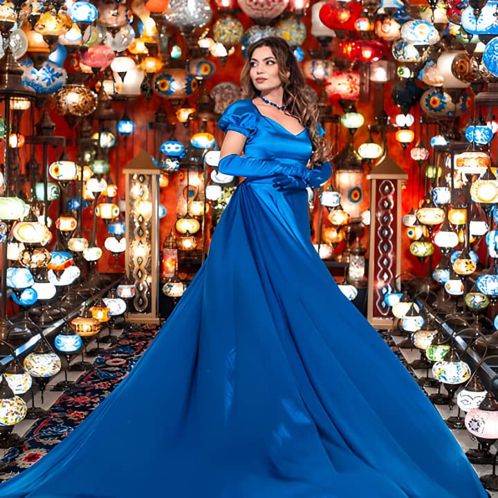 👗 Strike a pose in a flowing dress amidst a backdrop of Turkish Traditional Lamps.