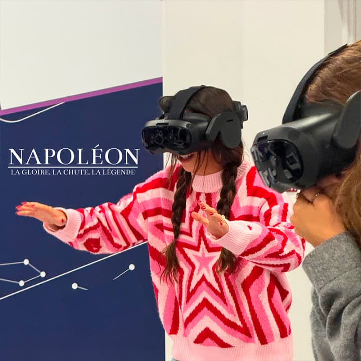 Napoléon, l'Épopée Immersive - une expérience en réalité virtuelle Plongez dans l'histoire de Napoléon en réalité virtuelle avec Napoléon, l’Épopée Immersive. Grâce à un casque de réalité virtuelle de dernière génération, laissez-vous transporter par Napoléon lui-même dans des moments clés de son histoire. Déambulez librement à travers des scènes marquantes, comme la réunion d’état-major avant la bataille d’Austerlitz, la charge des cuirassiers, ou encore l’ambiance glaciale de la Bérézina.