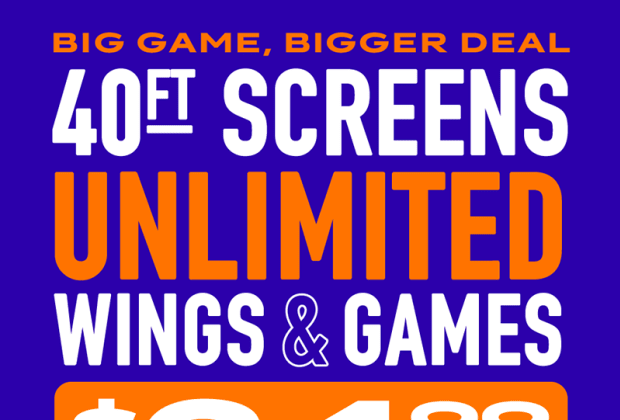This isn’t just another watch party, it’s a full-on game day takeover. Head to Dave & Buster’s, claim your seat, and lock in for every down on our epic 40-foot screens. Break through your hunger with unlimited wings throughout the game and keep the momentum alive with video game play while the action heats up. From opening kickoff to the final drive, expect big hits, big flavors, and big time vibes all game long. Get your tickets now!
