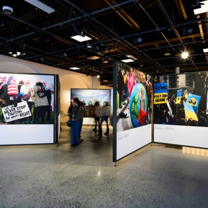 ✔️ View documentary photography and engage in public debates on peace and human rights.