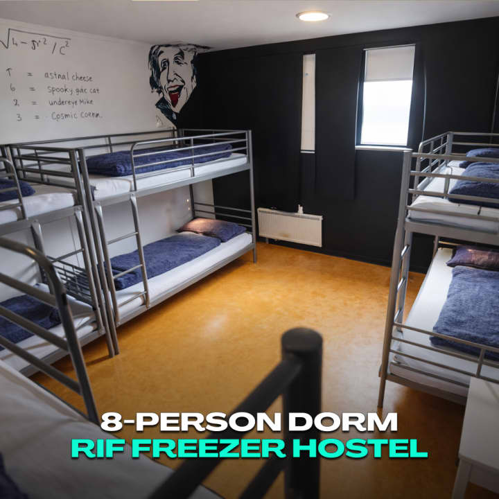 Stay in Iceland’s creative coastal community with an individual bed in a thoughtfully designed shared room athe Freezer—an award-winning social hostel set inside a beautifully reimagined former fish factory in the village of Rif. Guests enjoy access to fully equipped communal kitchens, inviting lounge spaces, and an intimate on-site theatre celebrated for performances, talks, and spontaneous moments of community.