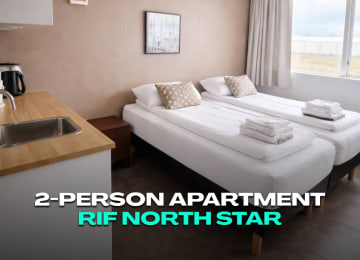 Stay immersed in Iceland’s creative coastal community with a private room for up to two guests at he Freezer—an award-winning social hostel set inside a beautifully reimagined former fish factory in the village of Rif. Guests enjoy access to fully equipped communal kitchens, inviting lounge spaces, and an intimate on-site theatre celebrated for performances, talks, and spontaneous moments of community.