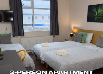 Stay immersed in Iceland’s creative coastal community with a private room for up to three guests at he Freezer—an award-winning social hostel set inside a beautifully reimagined former fish factory in the village of Rif. Guests enjoy access to fully equipped communal kitchens, inviting lounge spaces, and an intimate on-site theatre celebrated for performances, talks, and spontaneous moments of community.