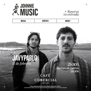 ¡Una experiencia gastronómica y musical muy especial en pleno barrio de Malasaña! Café Comercial te trae un concierto de JAVYPABLO, que presenta un directo cercano, con canciones de pop de autor e indie, pensadas para ser escuchadas con atención en un entorno íntimo. La experiencia se completa con una propuesta gastronómica sencilla que acompaña el concierto sin restarle protagonismo a la música. ¿Quién da más? ¡Consigue tus entradas para el concierto de JAVYPABLO en Café Comercial, Madrid!