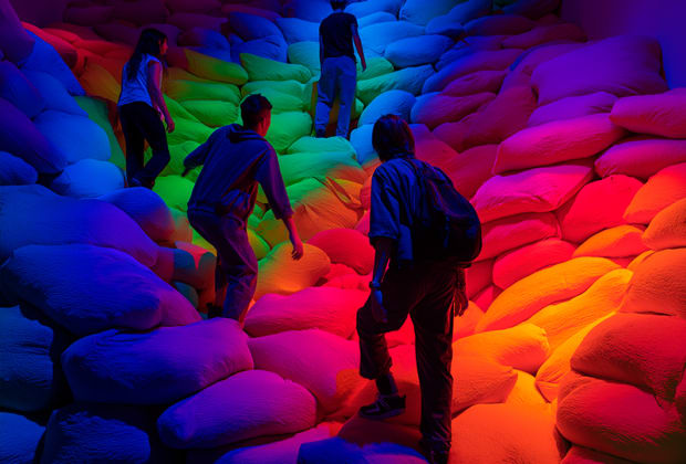 Musik, Farben und Bewegung tragen dich auf eine Reise durch traumhafte Räume, in denen das Bällebad zu einer Welt zwischen Fantasie und Wirklichkeit wird. Es lädt dich ein, einzutauchen, zu erkunden und im Rhythmus deiner Träume zu spielen. Energiegeladene Bereiche pulsieren mit verzauberten Lichtern und Klängen, während andere die Neugier mit magischen Spiegelungen, überraschenden Texturen und kleinen versteckten Geheimnissen wecken. Jeder Übergang in einen neuen Raum enthüllt neue Traumlandschaften, die Freude, Bewegung und Verbindung inspirieren. Versteckt unter den Bällen schafft das „VR Pool“ einen digitalen Traum, der virtuelle Interaktion mit physischem Spiel verwebt. Unterwegs verwandeln spielerische Interaktionen und versteckte Details die Entdeckung in einen sich ständig wandelnden Traum. Ein lebendiges, unvergessliches Abenteuer, gemacht für Bewegung, Fantasie und traumhafte Momente.