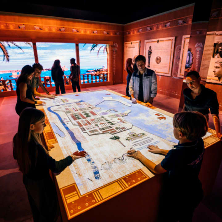 Erlebe das Alte Ägypten wie nie zuvor. Eine 30-minütige State-of-the-Art-Projektion entführt dich vom versunkenen Alexandria über prunkvolle Paläste bis zu epischen Schlachten.