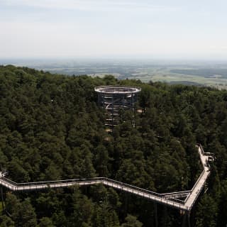 Le Chemin des Cimes Alsace - Liste d’attente ⭐ Le Chemin des Cimes Alsace t’invite à marcher au-dessus des arbres au cœur des Vosges du Nord et à profiter d’une vue panoramique à 360° depuis une tour culminant à 29 mètres.